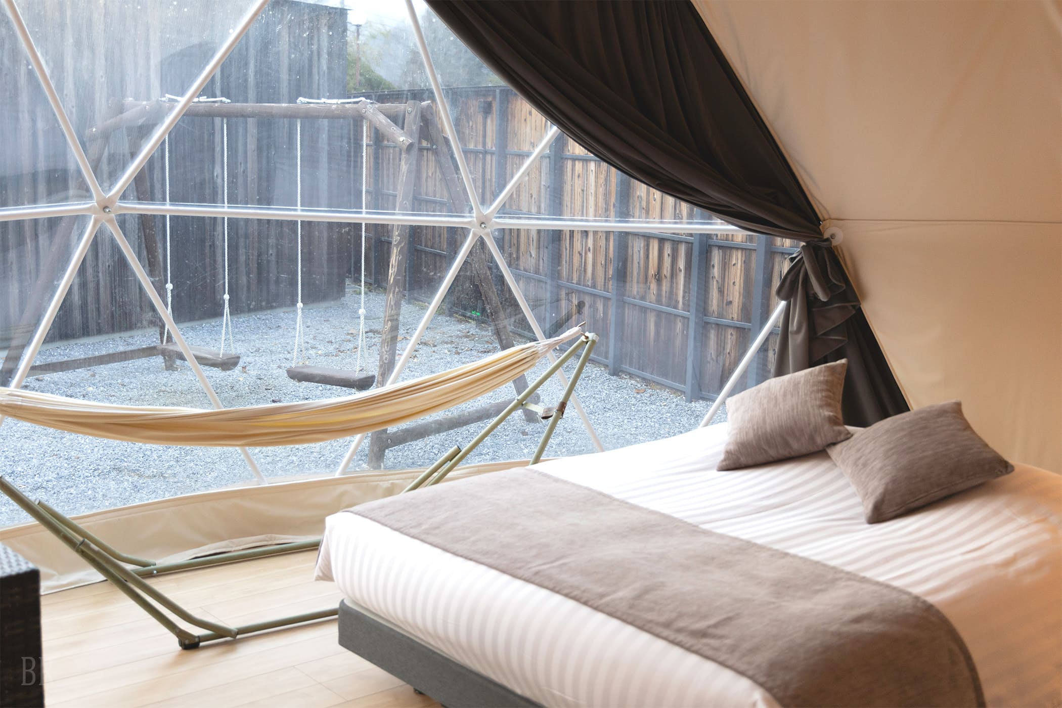 此外,直徑7m、頂高約4m的圓頂帳篷(約22張榻榻米)為丹麥製造,即使在寒冷地區也能可靠使用。
